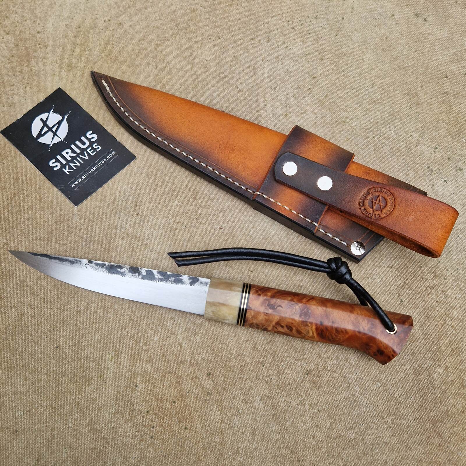 Hand Forged Puukko Knife with Stabilized Alder Burl Handle