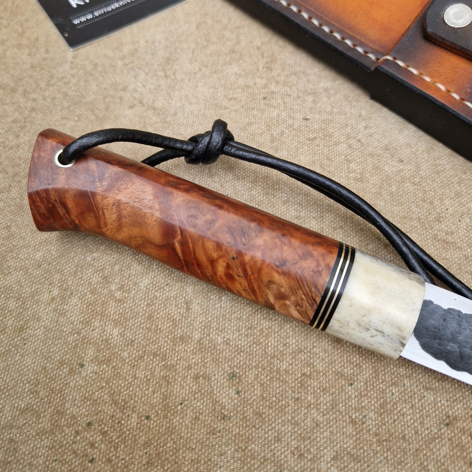 Puukko EDC Neck Knife with Stabilised Pear Burl Handle