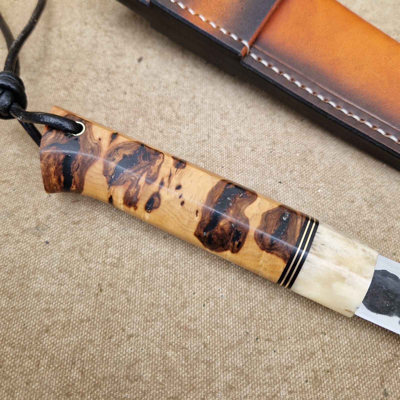 Puukko EDC Neck Knife with Stabilised Pear Burl Handle