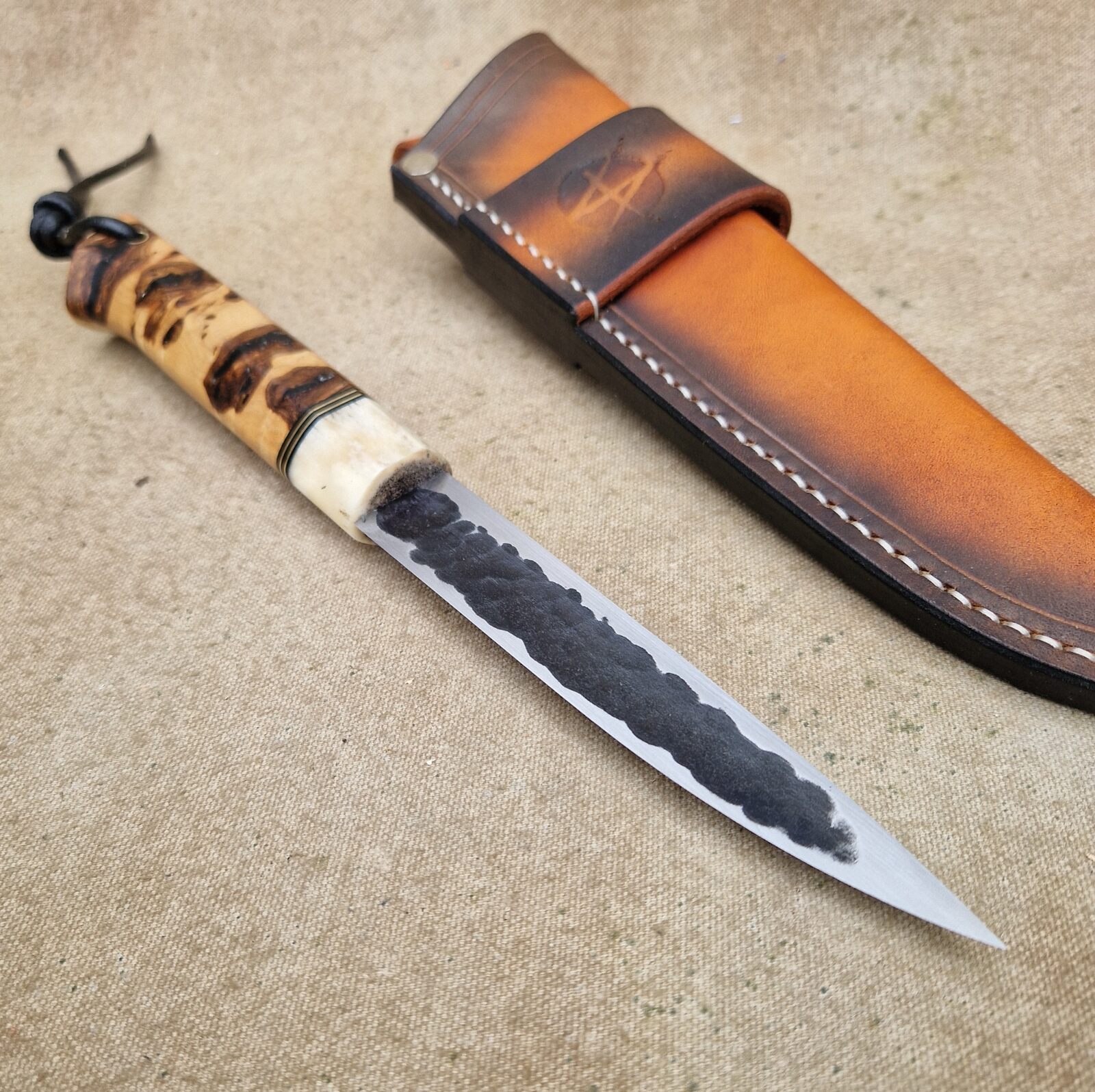 Hand Forged Puukko Knife with Stabilized Alder Burl Handle